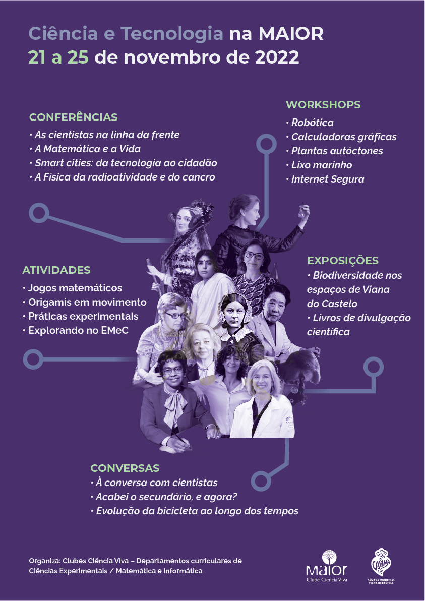 O Agrupamento de Escolas de Santa Maria Maior está a promover, de dia 21 a 25 de novembro de 2022, a Semana da Ciência e Tecnologia na MAIOR.