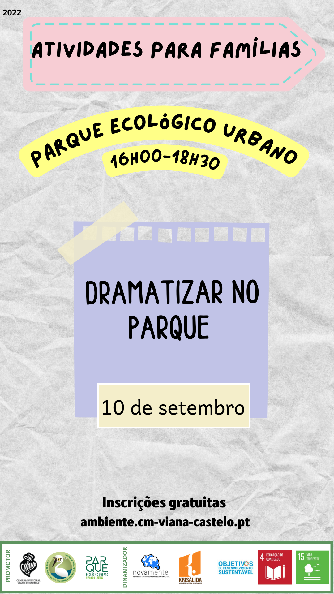 «Dramatizar no Parque», traz as oficinas de teatro para o exterior – o Parque Ecológico de Viana do Castelo – e com ele, essa ideia de “espaço ao ar livre” que se diferencia do habitual contexto interior. Essa atmosfera verde e sem paredes delimitadoras providencia ao jogo dramático um manancial de possibilidades de concretização distintas. Jogo esse, de um carácter simultaneamente lúdico e pedagógico que proporciona às crianças e aos pais que as queiram acompanhar, a exploração do “faz-de-conta”, não apenas consigo mesmas, mas como parte integrante de um grupo de pares.