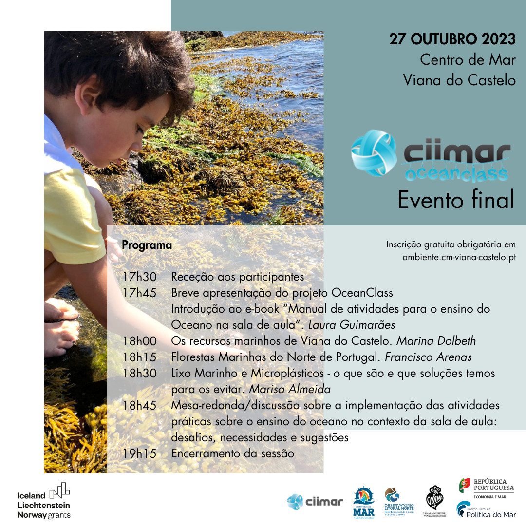 OUTROS EVENTOS | No próximo dia 27 de outubro, realizar-se-á, no Centro de Mar, o evento final do projeto OceanClass da EEA Grants, dedicado ao ensino do Oceano na sala de aula.