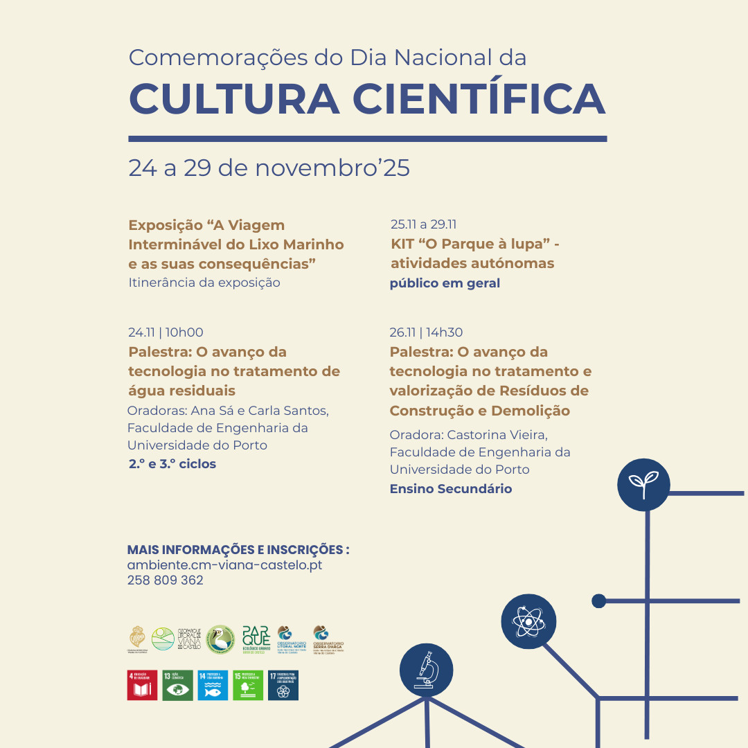 No âmbito da comemoração do Dia Nacional da Cultura Científica, celebrado no dia 24 de novembro, o Centro de Monitorização e Interpretação Ambiental (CMIA) de Viana do Castelo promove, entre os dias 24 e 30 de novembro de 2025, um conjunto de atividades dedicadas à divulgação da ciência e à promoção da literacia ambiental.
