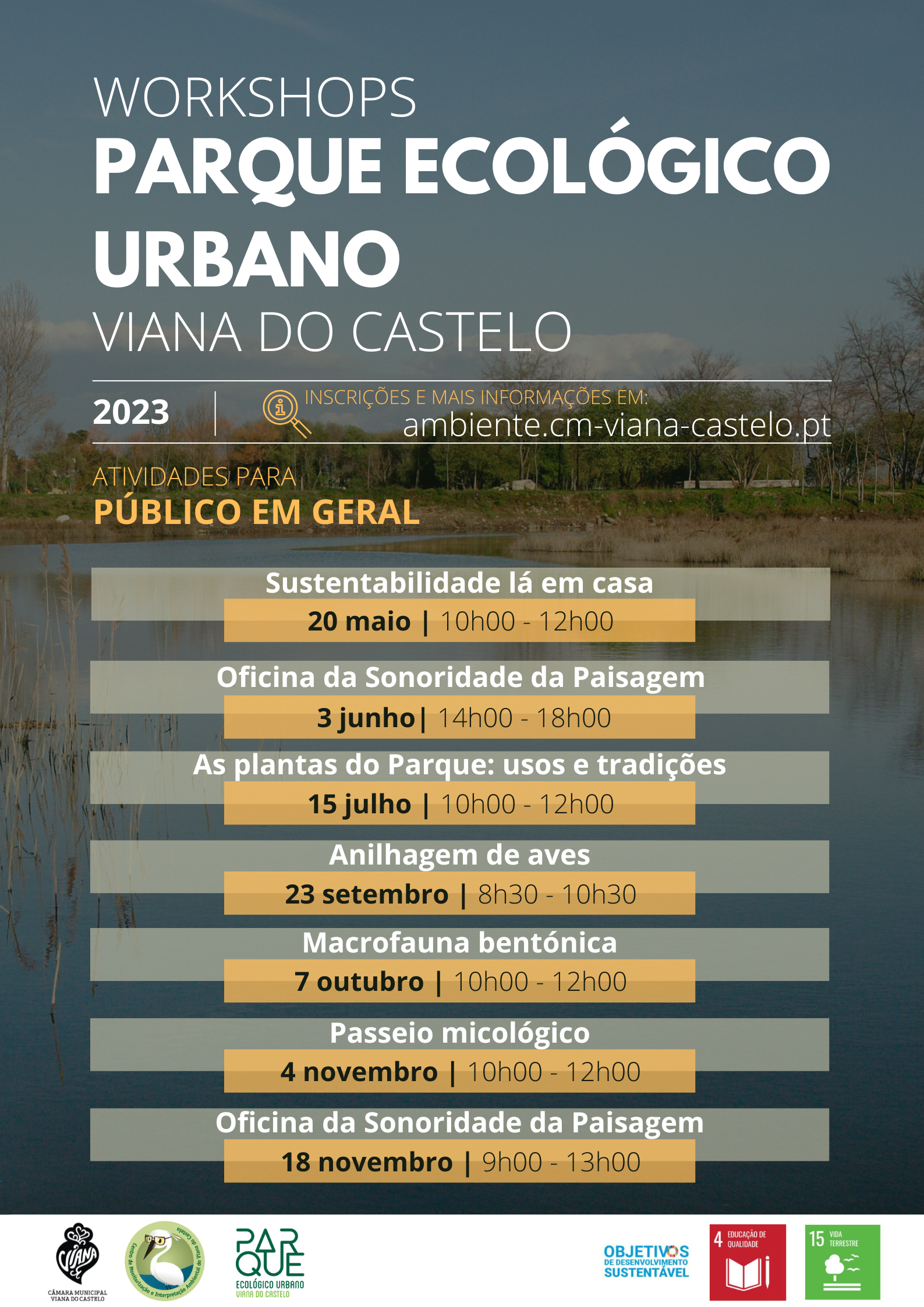 WORKSHOP PARA O PÚBLICO EM GERAL / O Parque Ecológico de Viana do Castelo, ao longo do ano 2023, proporcionará atividades mensais, direcionadas ao público em geral e famílias, com temáticas relacionadas com o ambiente e biodiversidade.