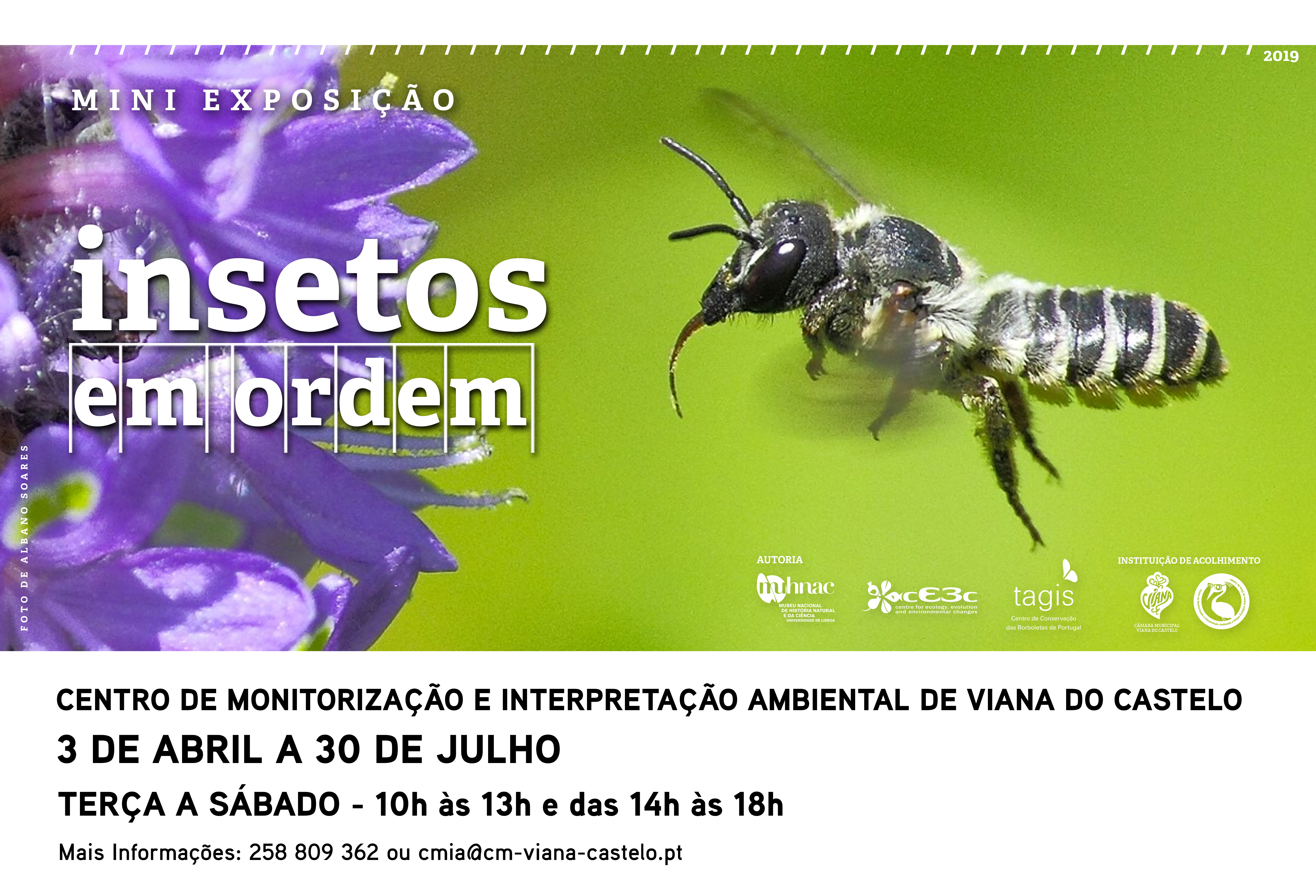 A exposição “Insetos em Ordem” está disponível no CMIA até 30 de julho, podendo ser visitada gratuitamente de terça-feira a sábado, das 10h00 às 13h00 e das 14h00 às 18h00.