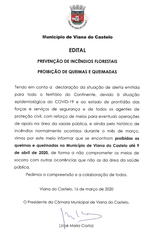 Prevenção de incêndios florestais - Proibição de queimas e queimadas até 9 de Abril.